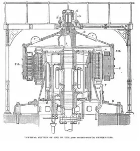 Sezione di un generatore polifase di 3700 kW (5000 HP) tratta dal vol. VIII (maggio – ottobre 1895) del Cassier’s Magazine
